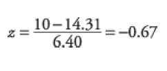 Example A normal distribution of retail‐store purchases has a mean of $14.31 and a standard deviation of 6.40. What percentage of purchases were under $10? First, compute the z‐score: